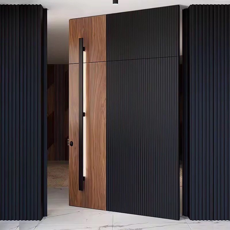 Edifort Limited Edition Main Entrance Aluminum Pivot Door Model #13. Modern exterior front door for homes, offering high security, durable construction, and contemporary casement style.